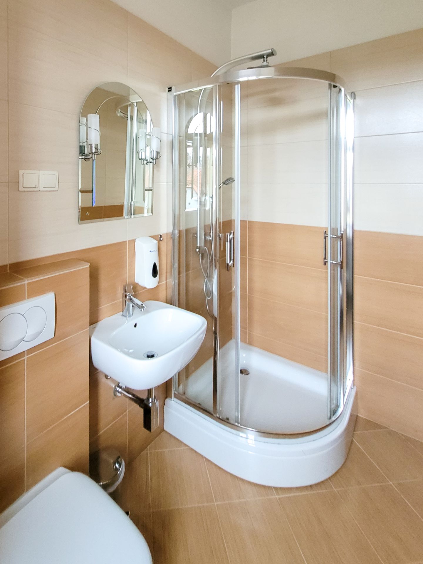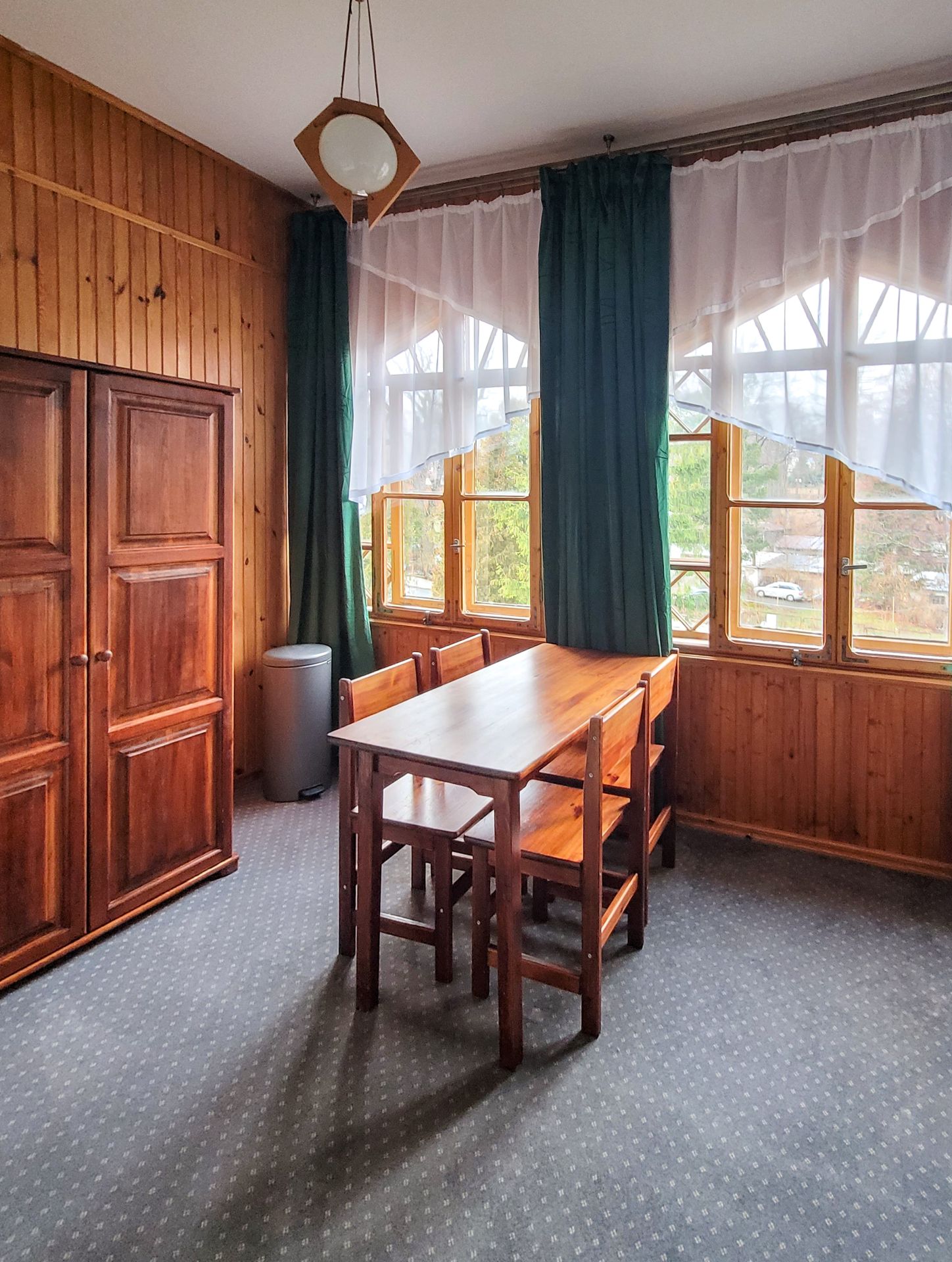 Rodzinne studio wyposażono w jedno podwójne i dwa pojedyncze łóżka. W pokoju znajdują się także: lodówka, TV, czajnik bezprzewodowy, stoliki nocne, lampki do czytania, miękkie ręczniki hotelowe oraz pojemna szafa z półkami i wieszakami na ubrania. W pokoju znajduje się również stolik z krzesłami, zestaw do przygotowania kawy i herbaty. Do dyspozycji naszych gości jest również ogólnodostępny w pełni wyposażony aneks kuchenny. Wszyscy goście mogą bezpłatnie korzystać z dostępu do Internetu (wi-fi).